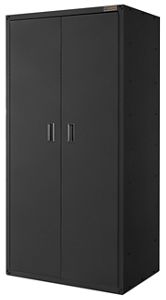 The Gladiator® Ready-to-Assemble Jumbo GearBox stands at six feet tall (183.9 cm) and two feet (61 cm) deep to easily hold your larger household items. This extra deep cabinet comes equipped with three full-width shelves that provide exceptional space for everything from camping gear to sports equipment. Locking Tread Plate doors with large recessed handles ensure that power tools and sharp equipment are safely stored. An included Wall Bracket Kit makes this storage cabinet easy to reposition on Gladiator® Wall Systems. Not compatible with caster kit.